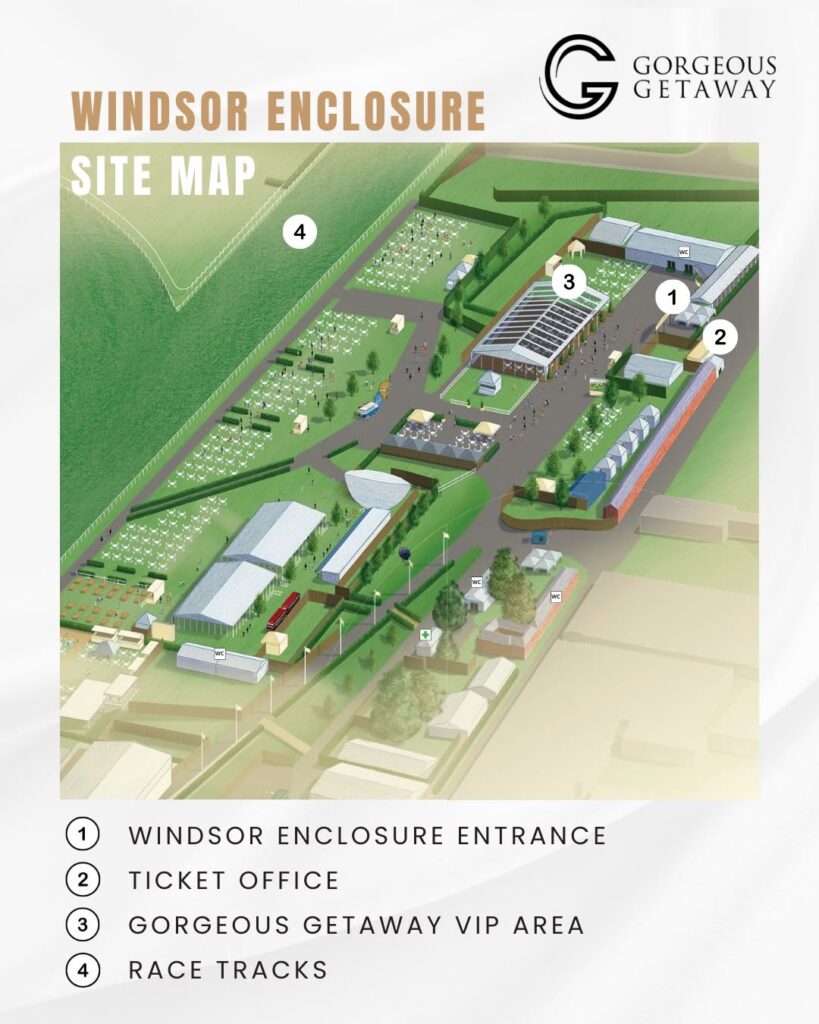 Our private area is located in the Windsor enclosure near the East entrance/exit, and Windsor Box Office. This is also the entrance/exit closest to the Coach park. Guests are free to leave VIP anytime to roam the entire Windsor enclosure and trackside. Alternatively, watch races from the comfort of your chair.